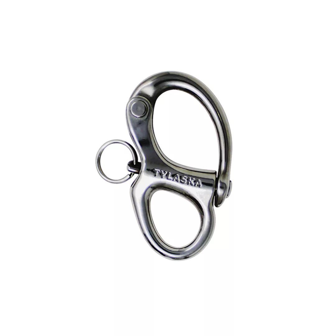 The CR snap shackle incorporates the extreme strength, outstanding corrosion resistance, and aerospace quality of Tylaska’s high performance racing hardware at a price that the cruiser or casual racer will find appealing. Unlike many plunger-pin snap shackles that are prone to catching on stays, the sleek geometry of the CR shackle has been optimized to reduce the risk of snagging and fouling. The locking hole feature allows the plunger pin to be locked in place using a small line or zip tie. Useful in extreme conditions where snap shackles have been known to release due to severe flogging.