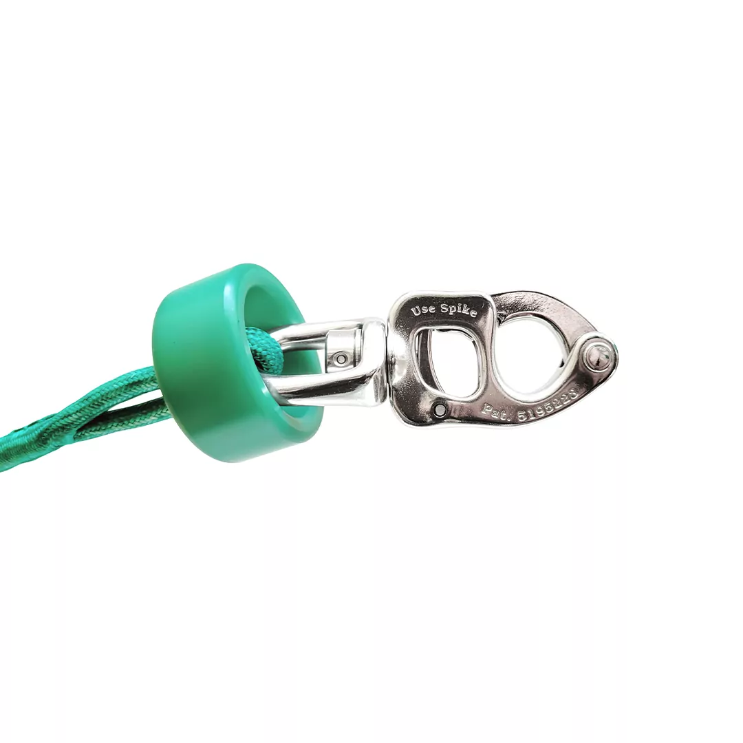 The recessed area that the shackle sits in allows the halyard to reach maximum hoist while providing maximum protection to both the rig and the shackle. These pucks are made from machined Delrin, which provides maximum strength and wear resistance without damaging the shackle or rig. They are available in various sizes, in red, black, green and white.